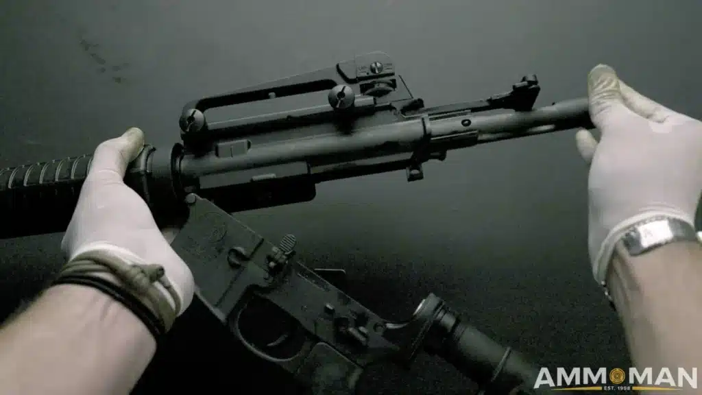 For the upper receiver, you want to ensure that you clean out as much as possible, including the chamber. This may require some special tools, but if you don’t have any, don’t worry. Just get as much as you can with cotton swabs and wipes and you’ll be fine.